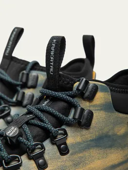 Ботинки Jasper — коллаборационная модель Hikes x KRAKATAU. Сделаны из водостойкого материала с брашинг-эффектом и ручной затиркой. Каждая модель обладает уникальным визуальным рисунком с эффектом износа. В комплекте прилагаются спасательное одеяло, кубик и карабин.